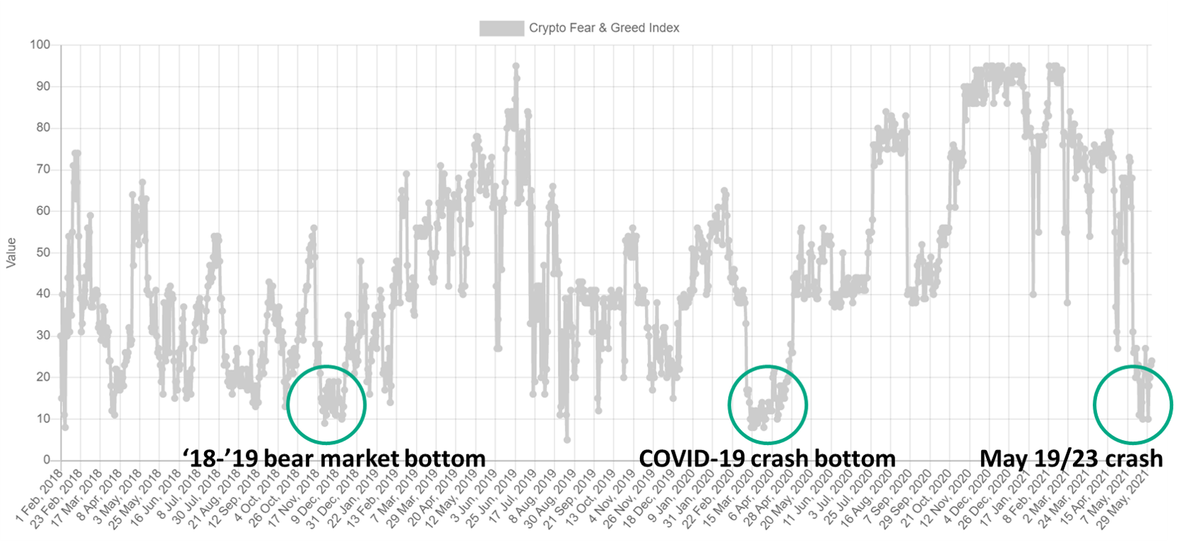 衡量加密货币市场情绪水平的一个流行指标是加密货币恐惧贪婪指数。在大多数市场中,参与者的行为往往是情绪化的。当价格上涨时,市场参与者往往变得过度贪婪,而当价格下跌时,他们也往往过度恐惧,并在亏损时非理性地抛售头寸。