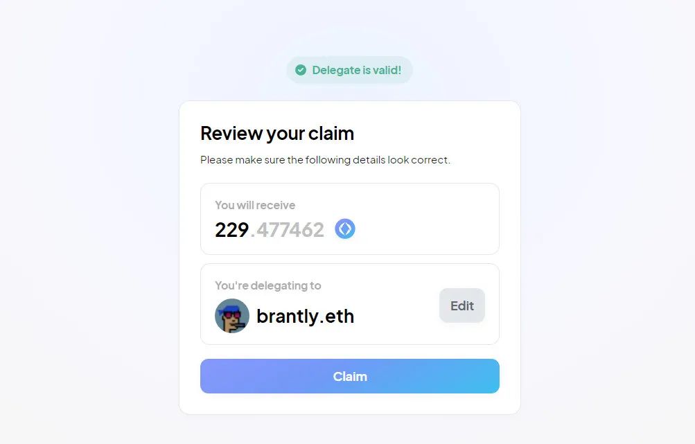 选择代理人后,单击Claim按钮并签署交易。