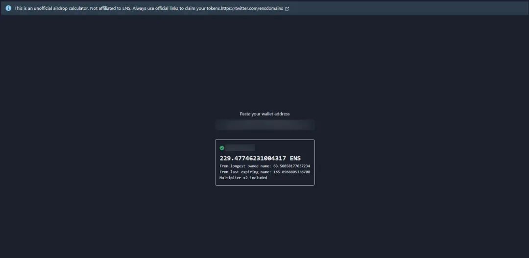 只需在搜索栏粘贴你的地址,它就会显示潜在领取。
