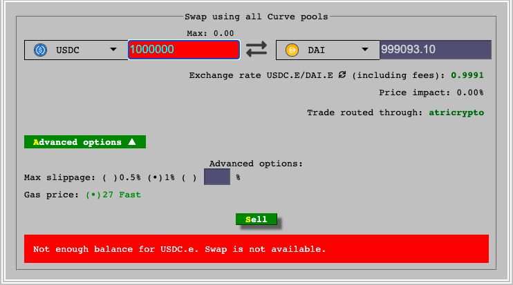 위의 그림과 같이 Curve와 Platypus Alpha 모두 백만 달러 규모의 스테이블 코인 트랜잭션을 실행할 때 0.1% 미만의 트랜잭션 슬리피지를 달성할 수 있으며 Platypus Alpha는 USDC-DAI 변환을 실행할 때 훨씬 더 우수합니다.