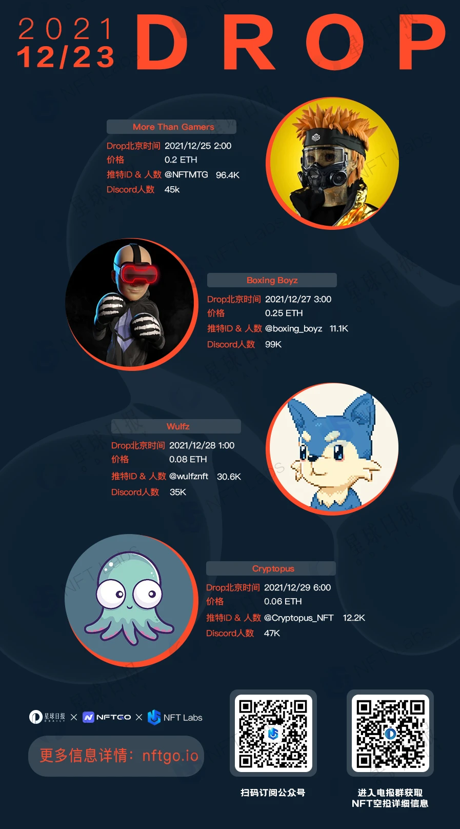 本期NFT报汇总了时下最新最热最巨投资价值的drops,仅供参考。