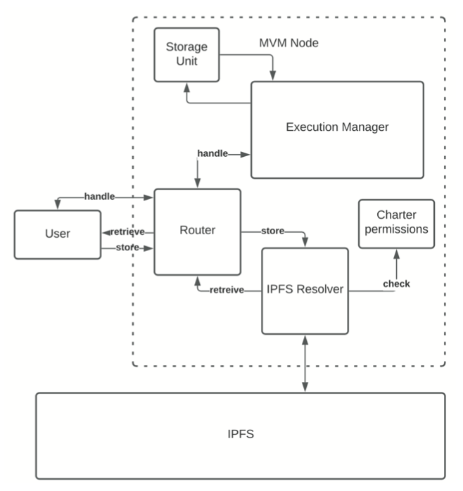 由于区块空间有限,以太坊和比特币上的数据存储成本很高。Metis 通过允许每个 DAC 运行单独的 MVM 实例来节省链上空间,该实例具有使用星际文件服务 (IPFS) 的内置存储层。用户和开发者可以通过 MVM 的 IPFS 解析器访问来自 Metis 的内容。