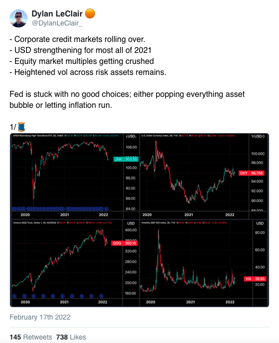 我们需要注意的是,从艾伦·格林斯潘和「格林斯潘对策」(后来被称为美联储对策)开始,金融市场就已经意识到美联储将会采用扶植信贷市场和保持资金流动的方式来应对市场波动。如今到了 2022 年,美联储的基金利率仍然处于零下限,而且其已经成为一个政治工具,但在整个金融市场的流动性回落之际,美联储却未能做好相应的准备。