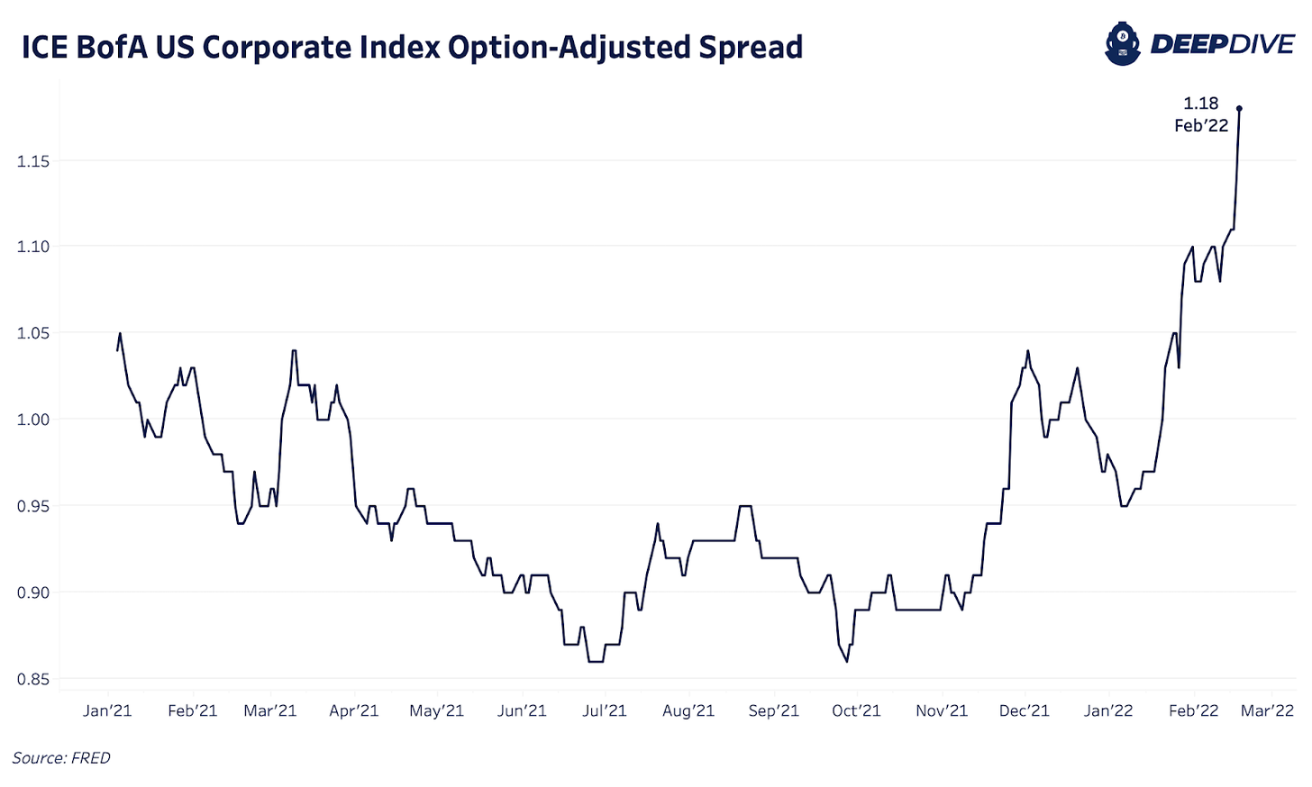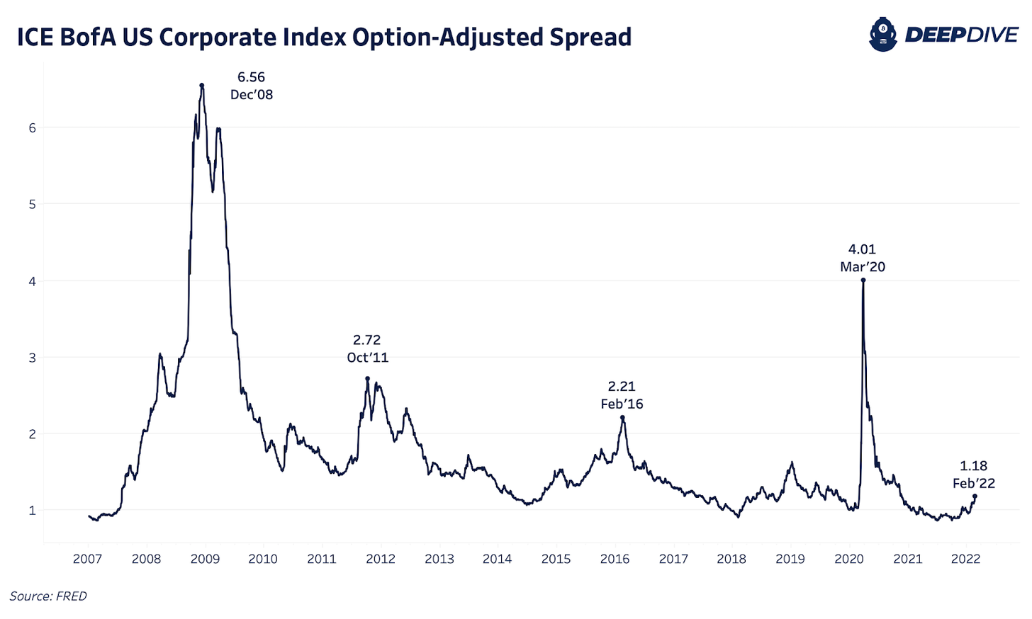 美国的通胀率已经达到了 40 年来的最高点(世界其他地区也如是),这让投资级债券基本退出了市场,因为就算不考虑任何违约风险,其名义收益率也已经远远低于通胀率了。