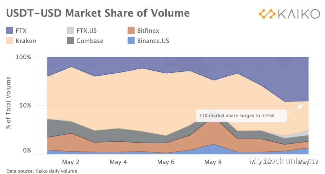 FTXのUSDT-USD出来高市場シェアが2日で2倍以上に拡大