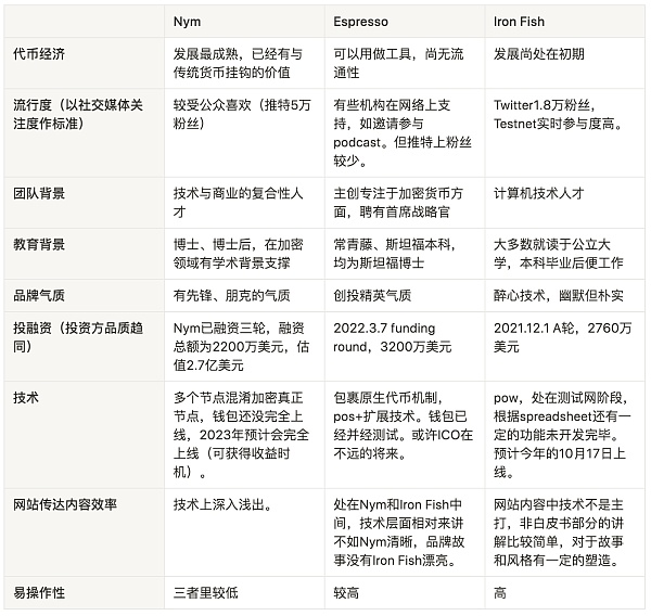 总而言之,三个项目均属隐私领域中的佼佼者,投资方亮眼。在不同侧重点各有优劣。