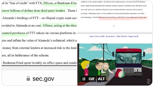 总结:以上是 SBF 诉讼案的 12 个要点提炼,预计后续还会有更多针对他、及其同谋们的诉讼案件出现,并将 SBF 推向属于他的最终结局。