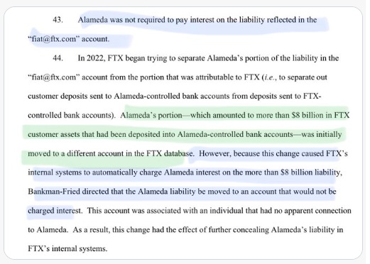 8、SBF 是导致高达 80 亿美元 FTX 客户资金流失的罪魁祸首。SBF 要求 Alameda Research 执行了一系列违规操作,将 80 亿美元的 FTX 客户资金直接汇入到 Alameda 账户,这些资金本质上属于“贷款”,而 SBF 甚至能让 Alameda(其实就是 SBF 自己)不必支付任何利息。
