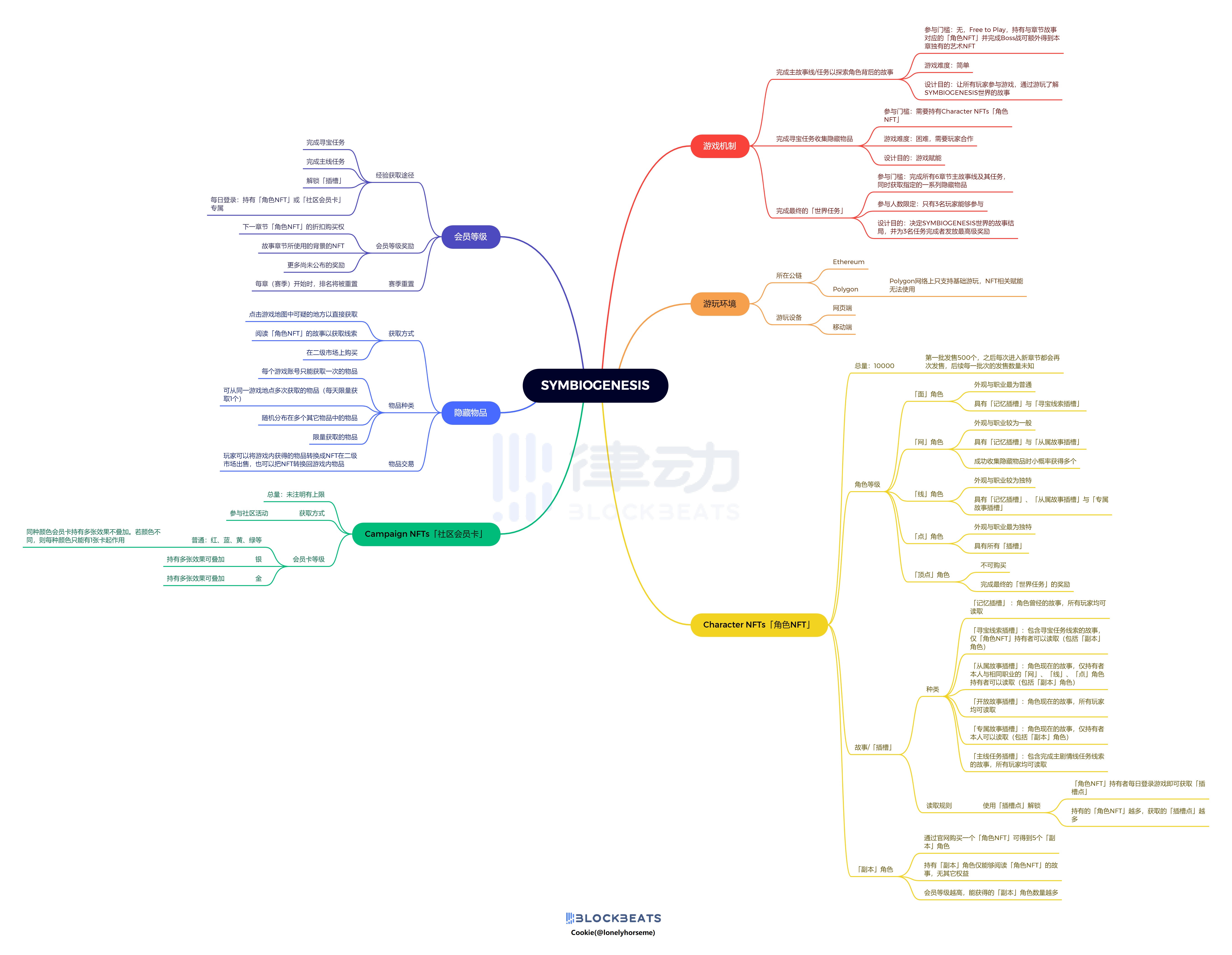 需要注意的是,目前在 SYMBIOGENESIS 官方 Discord 内抽奖得到的是「社区会员卡」,「角色 NFT」的首批销售暂时不知道是否会有白名单机制。「社区会员卡」目前官方仅透露了一个作用就是上述的每日登录获得经验,根据卡的等级的不同,获得的经验多少也不同。