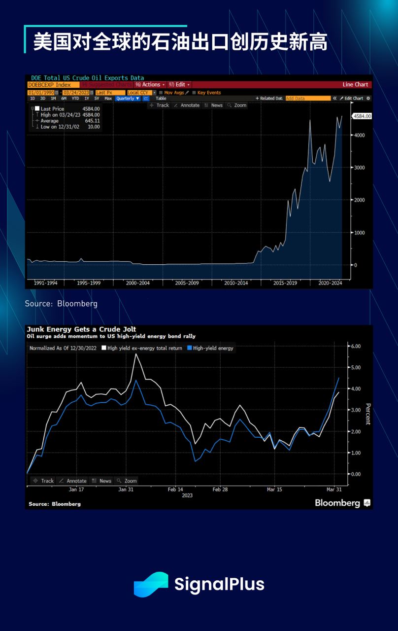 - OPEC+ 意外宣布从 2023 年 5 月开始每日减产 116 万桶,油价在周一跃升逾 6% ,原油的基本面在过去几个月已经逐渐走弱,特别是 2023 年原油库存增长速度快于预期,中国重新开放的速度低于预期,加上美国对全球的石油出口创下历史纪录,使得交易员已经大量做空原油期货,因此价格涨幅超过预期也不会太让人惊讶。