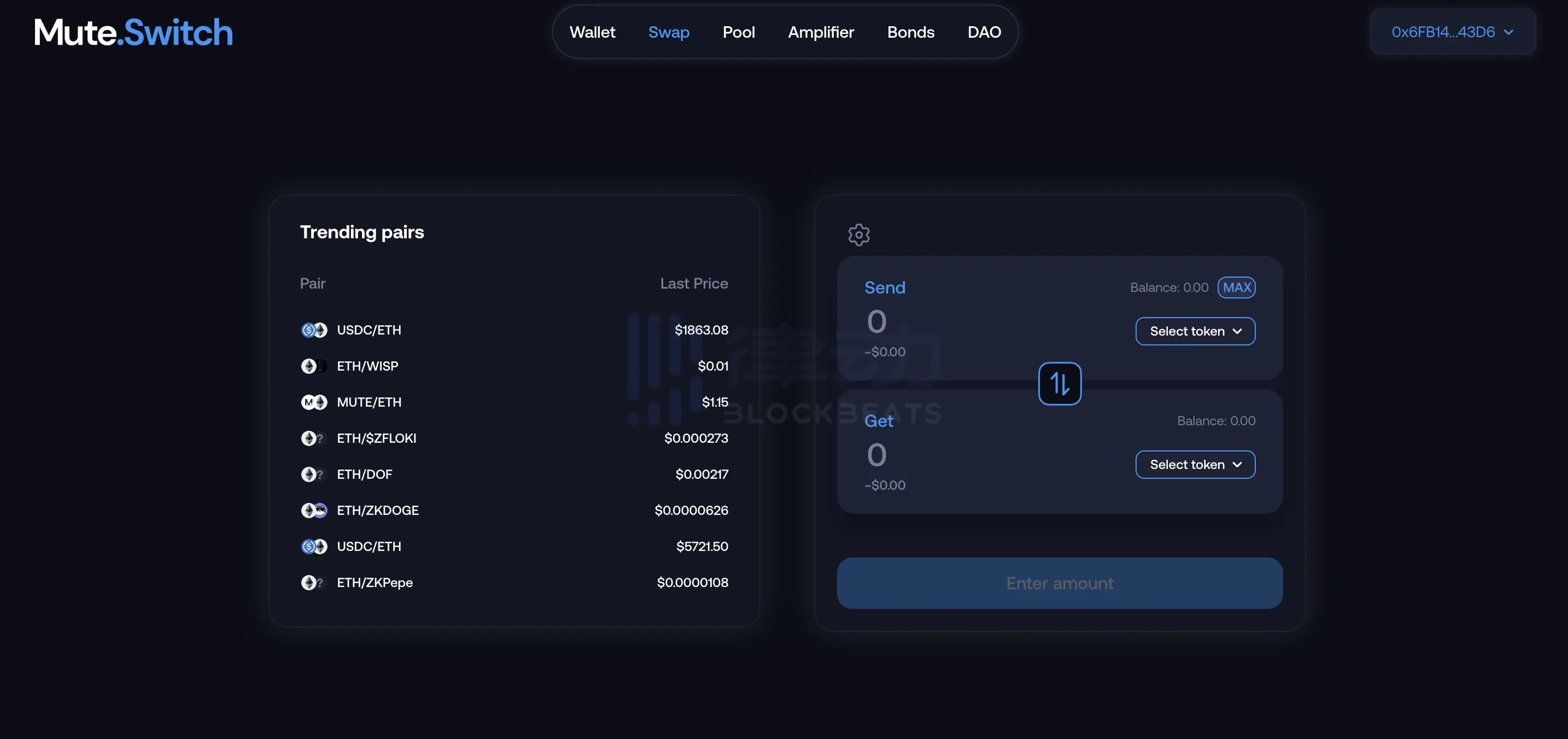 Mute.io is a DeFi platform that builds liquidity for all zkSync Era ecological protocols, and its Dapp is Mute Switch, an AMM DEX w/limit order book, mining and bond platform. Mute is a solution to the zkSync Era protocol that properly incentivizes liquidity for its own use case. TVL is about 13.31 million US dollars; the interface is simple and easy to operate, up to 8 points; Swap: supports 11 kinds of tokens, and the Gas is 1.8 dollars. The APY on Pool is between 14% -71%. Of course, some high APYs come from some unknown token and WETH pairs; social media was created in March 2018, with about 62,000 followers.