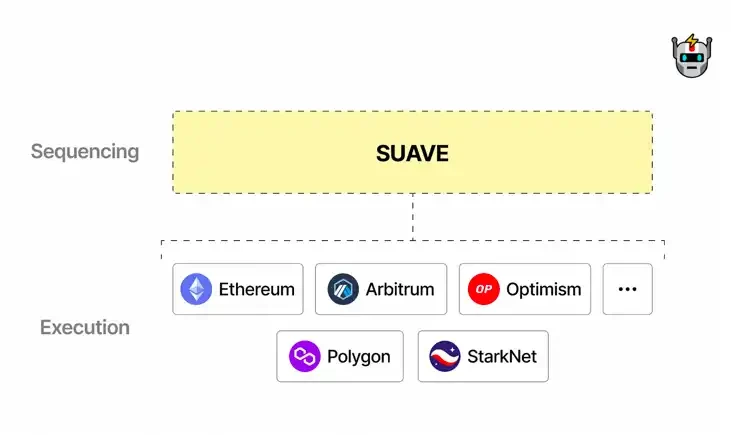 SUAVE cross-chain situation, source:https://writings.flashbots.net/the-future-of-mev-is-suave/