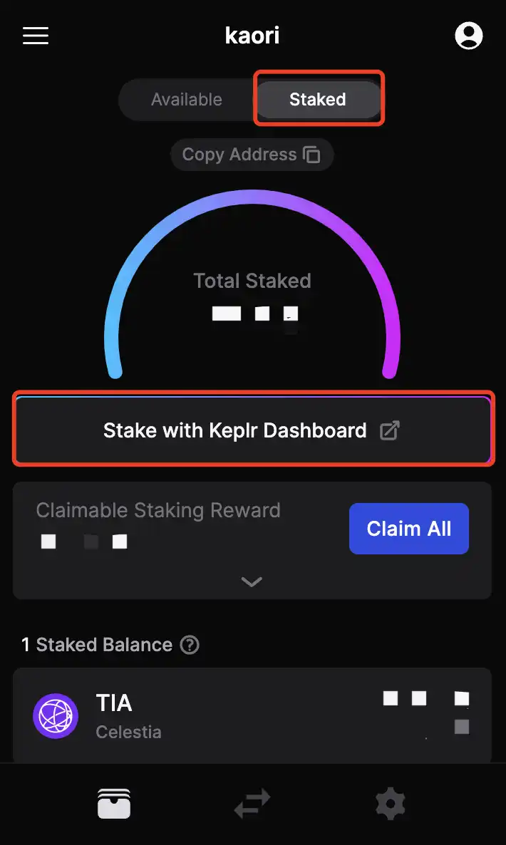 使用 Keplr 钱包质押 TIA