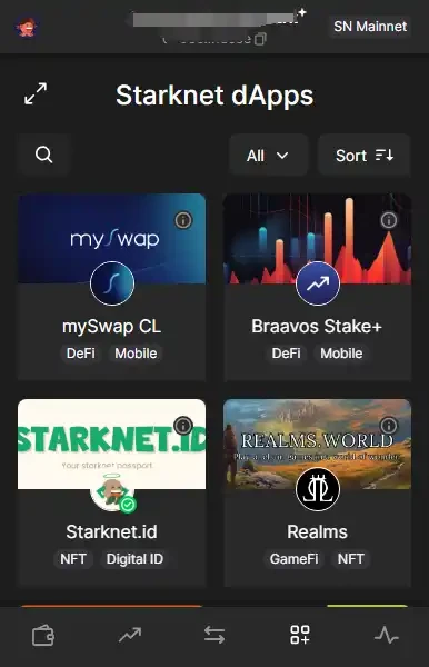 使用 Braavos 钱包的用户可在 Starknet dApps 导航页面便捷参与生态项目交互,比较方便。以下是一些推荐交互项目整理: