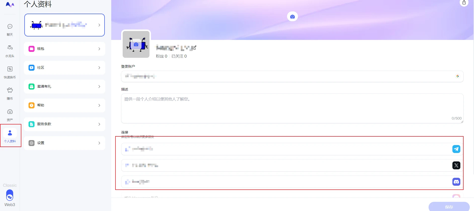 步骤 3 :绑定个人资料,当前测试网需要通过 X 平台(推特)认证获得测试代币,因此用户需要先通过个人资料界面进行账户绑定。