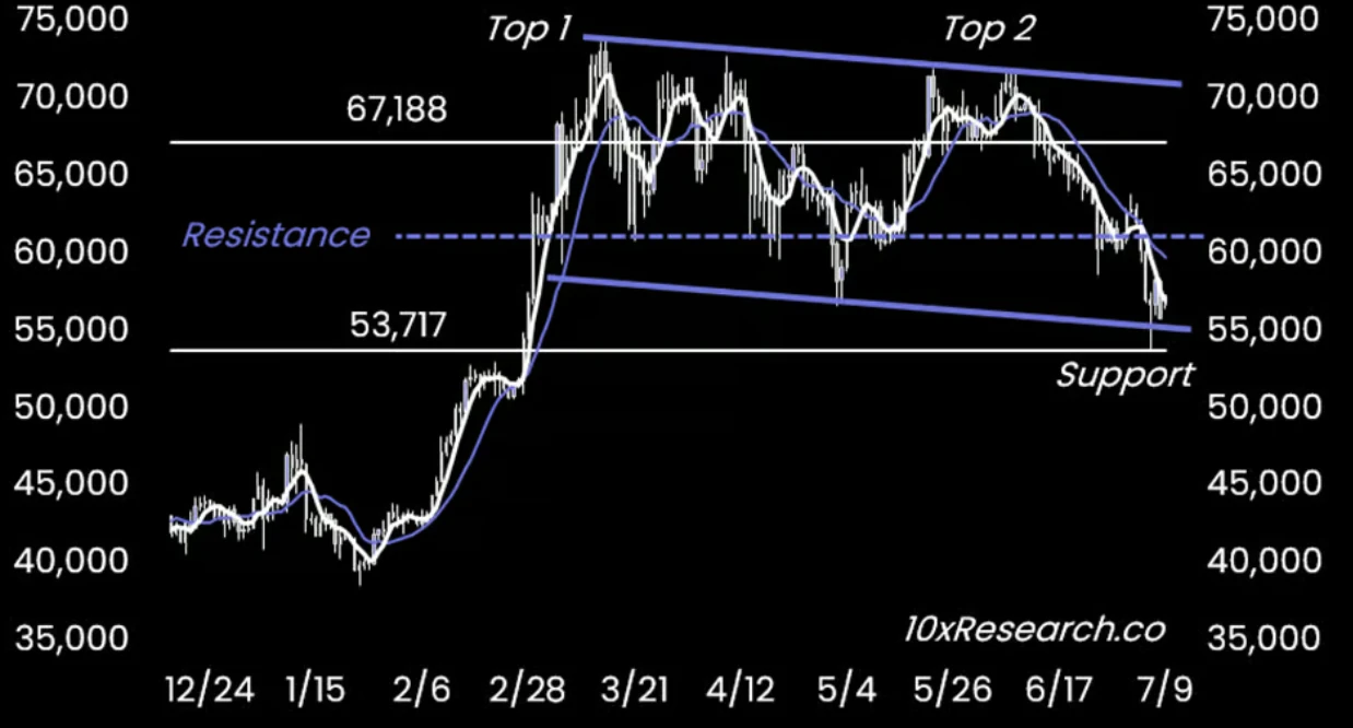 市场预计 7 月 11 日即将发布的 CPI 数据会降至 3.1% ,这符合我们的猜想,也符合市场的反弹期望。核心 CPI 环比若可下降 0.2% ,预计仍会影响比特币的价格走势。然而,德国政府、Mt.Gox 以及即将到来的 Bitgo 等潜在抛压也不容忽视。