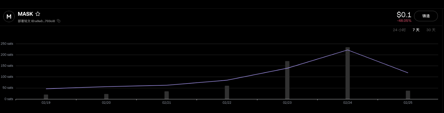 The BRC-20 token MASK was scheduled to be deployed on March 10, 2023. Even at the peak of the BRC-20 inscription, it was not minted, and some players were stuck at the highest position last year with a minting rate of 30 satoshis/byte.