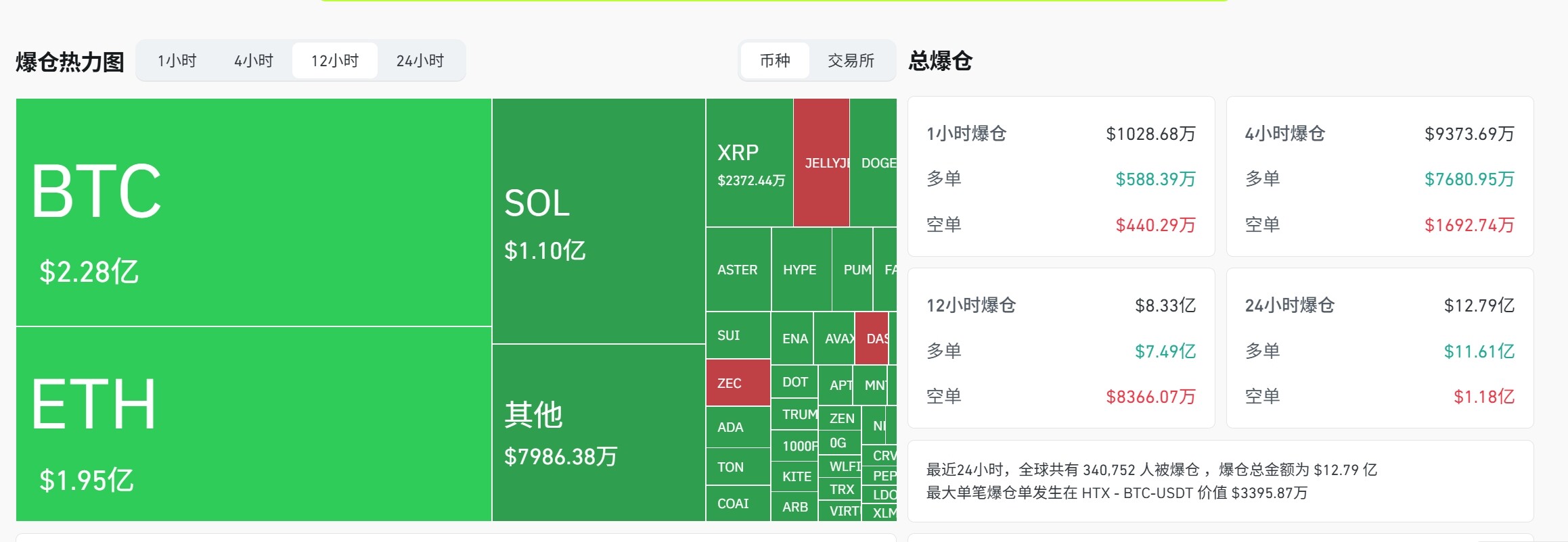 ตามข้อมูลจาก Coinglass ซึ่งรายงานโดย Odaily Planet Daily มีการชำระบัญชีตำแหน่งมูลค่ารวม 833 ล้านดอลลาร์ทั่วทั้งเครือข่ายในช่วง 12 ชั่วโมงที่ผ่านมา รวมถึงตำแหน่งซื้อ 749 ล้านดอลลาร์และตำแหน่งขาย 83.66 ล้านดอลลาร์