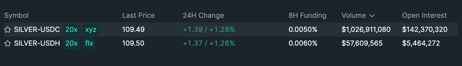Hyperliquid ปริมาณการซื้อขายสัญญาเงินใน 24 ชั่วโมงที่ผ่านมาเกิน 1 พันล้านดอลลาร์