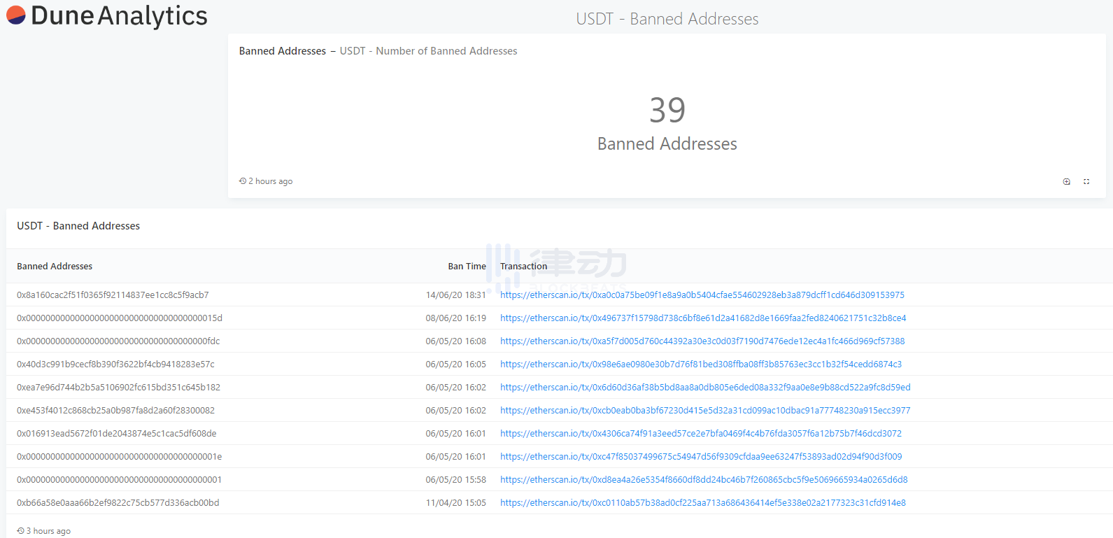 Rhythm BlockBeats ได้สอบถามว่าหลังจากเกิดเหตุการณ์ดังกล่าว Philippe Castonguay ผู้พัฒนา Ethereum ได้สร้างหน้า DuneAnalytics เพื่อแสดงและติดตามที่อยู่ที่ถูก USDC ขึ้นบัญชีดำ Rhythm เห็นว่าตามข้อมูลล่าสุดในหน้านี้ ที่อยู่ 39 แห่งถูกระบุว่าเป็นที่อยู่ต้องห้าม