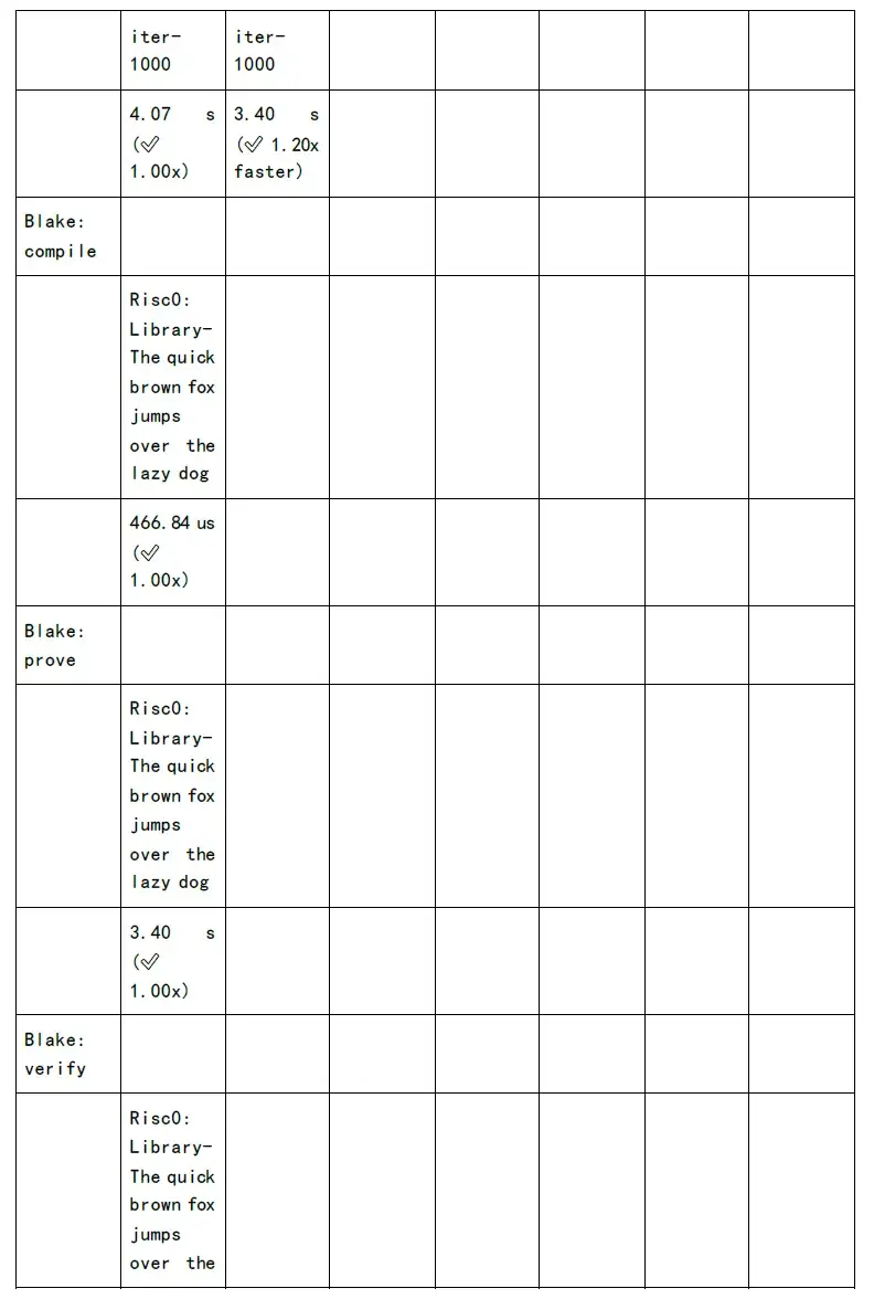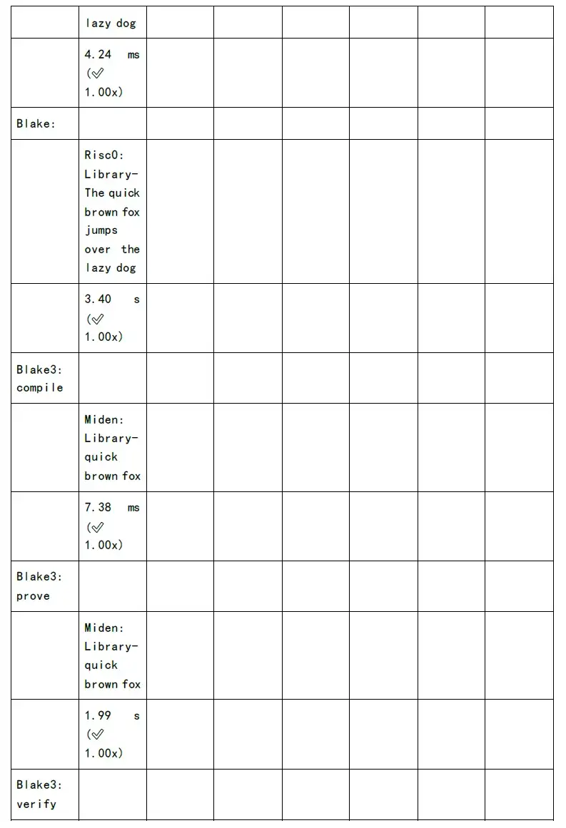 รูปต่อไปนี้แสดงการทดสอบเวลาในการสร้างการพิสูจน์และเวลาการตรวจสอบของแต่ละอัลกอริทึมตระกูล zkSnark: