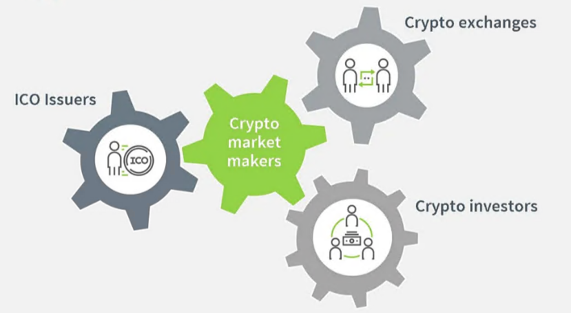 • ในตลาดเข้ารหัส สภาพคล่องของโทเค็นโครงการมีความสำคัญพอๆ กับผลิตภัณฑ์ ทีมงาน และการดำเนินงาน ความสัมพันธ์ระหว่างฝ่ายโครงการและผู้ดูแลสภาพคล่องส่วนใหญ่สร้างขึ้นผ่านผู้ดูแลสภาพคล่องที่ให้บริการด้านสภาพคล่องแก่ฝ่ายโครงการ ฝ่ายโครงการ โดยเฉพาะอย่างยิ่งโครงการใหม่ในเวที ICO หรือ IEO ต้องการทีมผู้ดูแลสภาพคล่องสำหรับการจัดการราคา ผู้ดูแลสภาพคล่องมีบทบาทสามประการ: