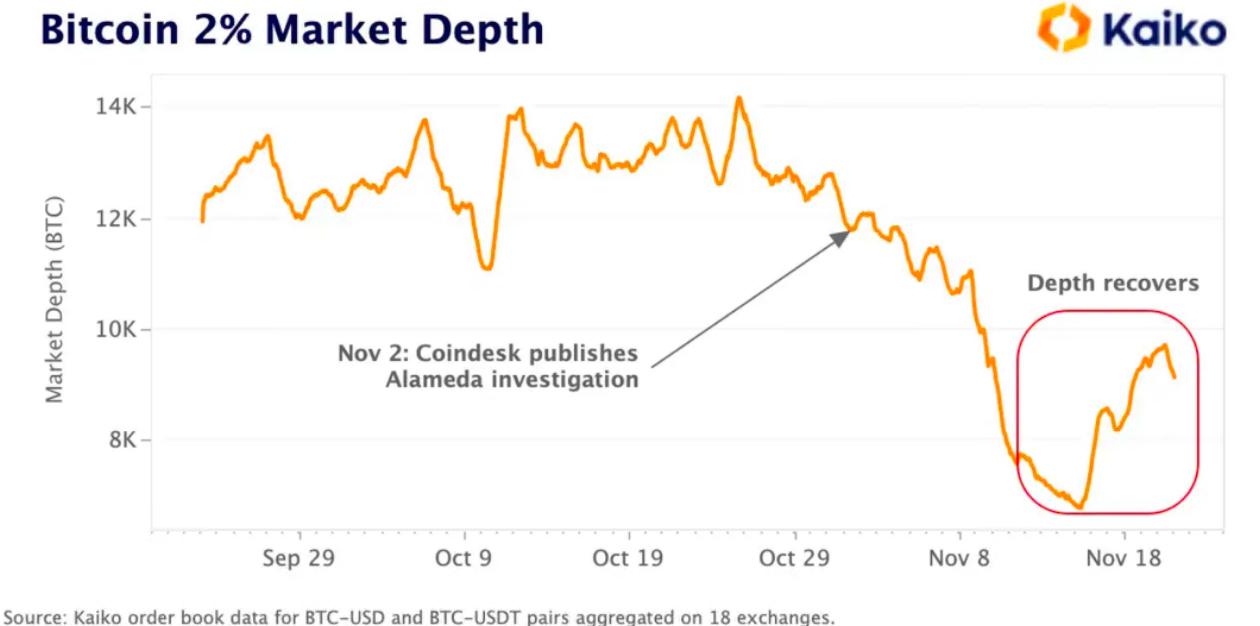 รูปที่ 6 สภาพคล่องในการแลกเปลี่ยน Kaiko BTC