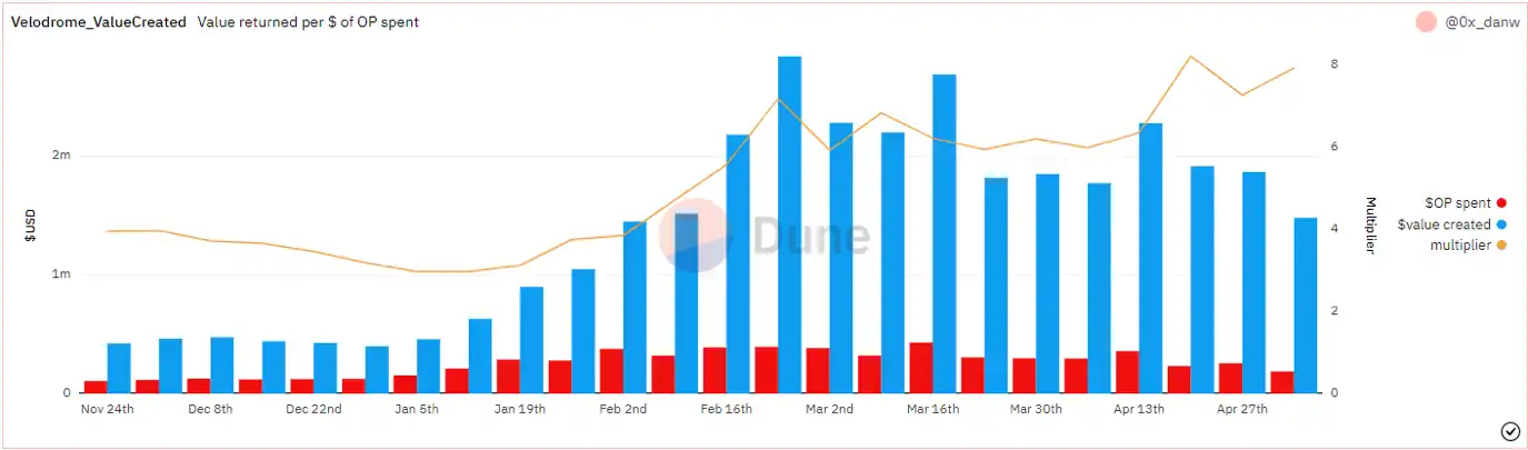 Velodrome เป็น Solidly Fork เพียงแห่งเดียวที่ได้รับการสนับสนุนสำหรับเครือข่าย OP ของพวกเขาในรูปแบบของการบริจาค OP และเงินช่วยเหลือนี้จะใช้สำหรับโปรแกรมสิ่งจูงใจอันซับซ้อนของพวกเขา: Tour De OP จากผลของโปรแกรมสิ่งจูงใจนี้ ทุกๆ 1 ดอลลาร์ที่ใช้ไปกับ OP จะสร้างมูลค่า 8 ดอลลาร์สำหรับผู้ให้บริการสภาพคล่องและผู้มีสิทธิ์ลงคะแนน veVELO ซึ่งช่วยให้ Velodrome บรรลุ TVL สูงสุดจาก 6 fork