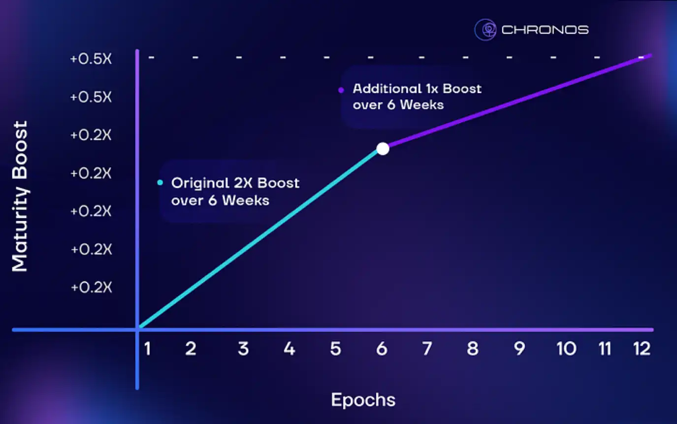 Chronos ยังมีคอลเลกชัน NFT ที่สามารถรับค่าธรรมเนียมโปรโตคอลได้: chrNFT แต่ความแตกต่างจาก Thena ก็คือ Maturity-Adjusted Return ดังนั้น ยิ่งผู้ให้บริการสภาพคล่องให้สภาพคล่องนานเท่าใด สิ่งจูงใจในการปล่อยก๊าซก็จะยิ่งมากขึ้นเท่านั้น