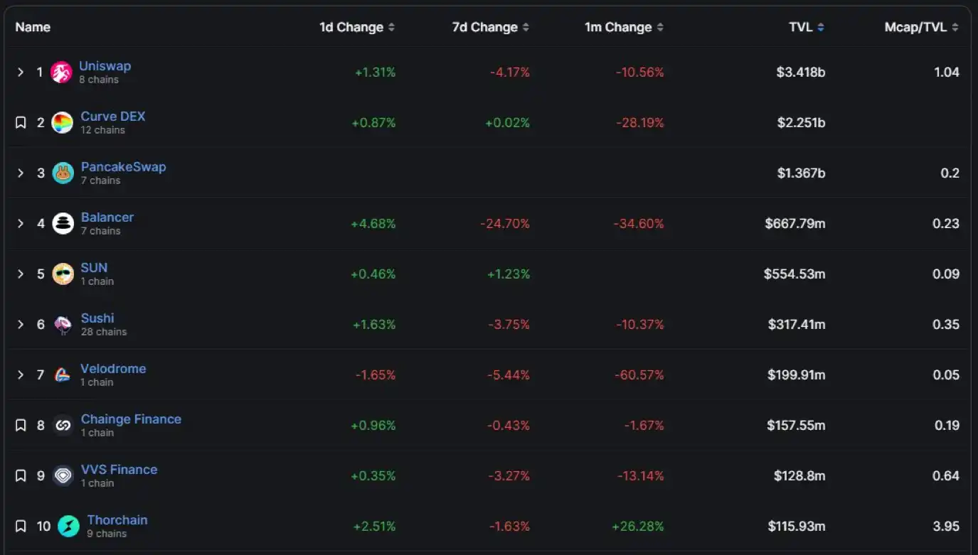 Velodrome ยังเป็น Solidly Variant เพียงตัวเดียวในระบบนิเวศ DeFi ทั้งหมดซึ่งมี TVL ติดอันดับหนึ่งใน 10 อันดับแรก