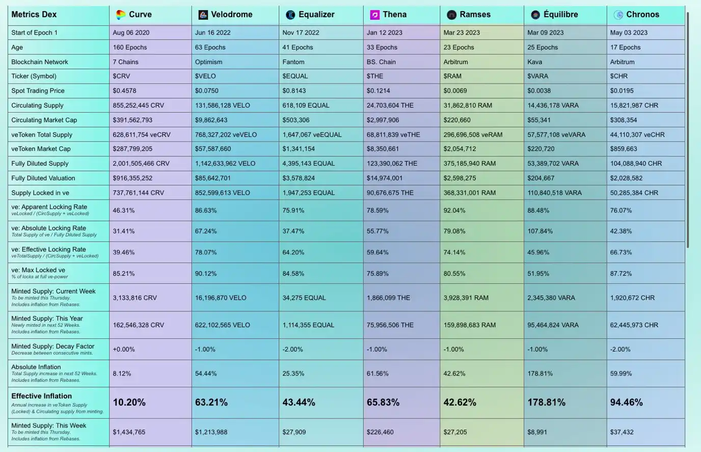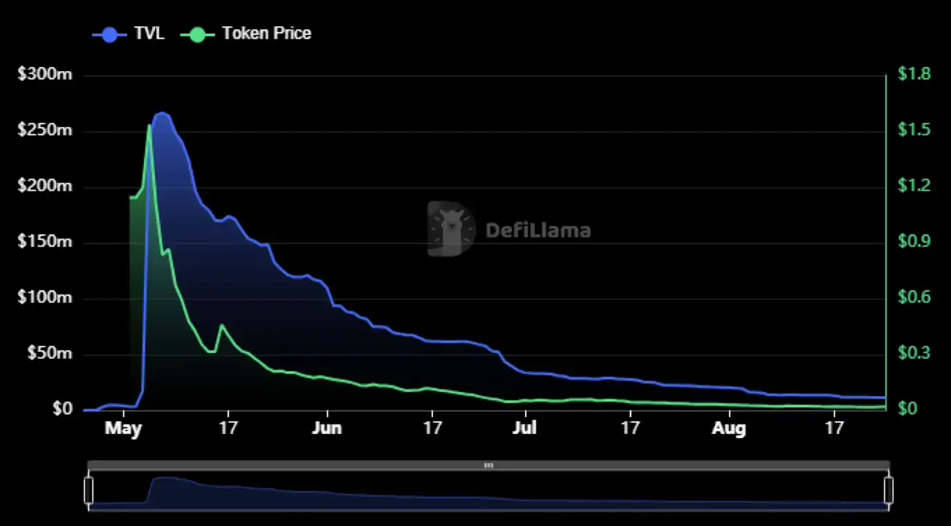 นอกจากนี้ ยังเป็นที่น่าสังเกตว่า ยกเว้น Pearl ซึ่งมีอายุเพียงสองเดือน Solidly Variants ทั้งหมดกำลังประสบปัญหา TVL ลดลง โดยที่ Velodrome จะสูญเสีย TVL ที่ช้าที่สุด Chronos ประสบความสูญเสียที่ร้ายแรงที่สุด โดยสูญเสีย 95% ของ TVL สูงสุดในประวัติศาสตร์ภายใน 3 เดือน
