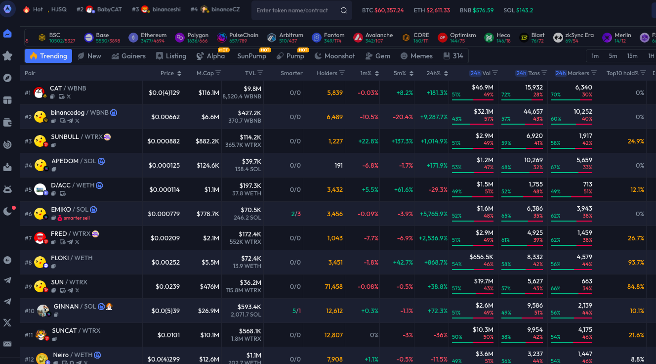 สำหรับการสแกนลูกโซ่ สิ่งที่สำคัญที่สุดคือเครื่องมือตรวจสอบที่ครอบคลุม และเครื่องมือที่ใช้กันมากที่สุดคือ GMGN.AI