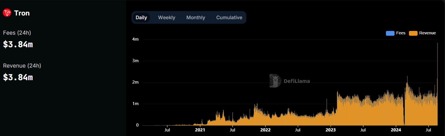 ค่าธรรมเนียมบล็อกเชนของตรอน (ที่มา: DeFillama)