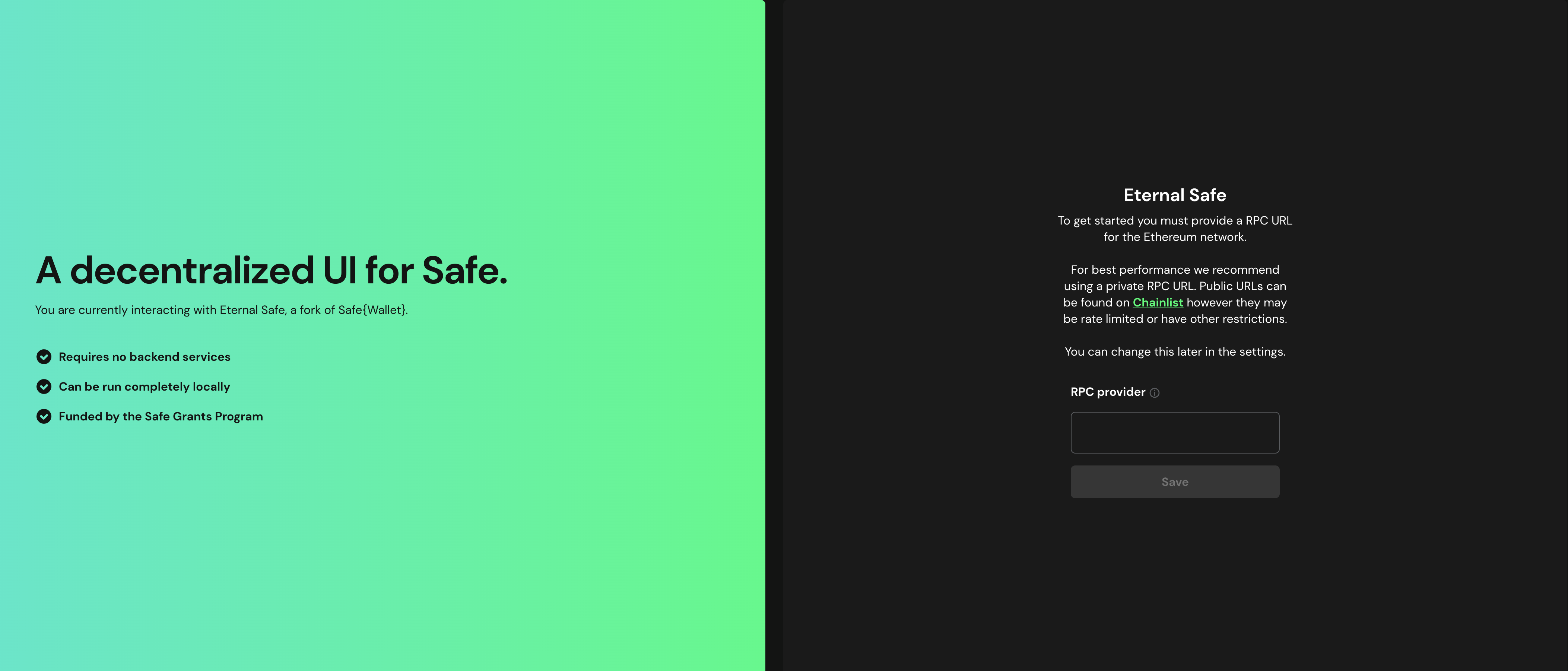 หมายเหตุ: ปัจจุบัน เว็บไซต์ทางเลือกอิสระทั้งสองแห่งที่ให้บริการโดย Safe ต่างต้องการให้คุณระบุลิงก์ RPC ของคุณเอง: