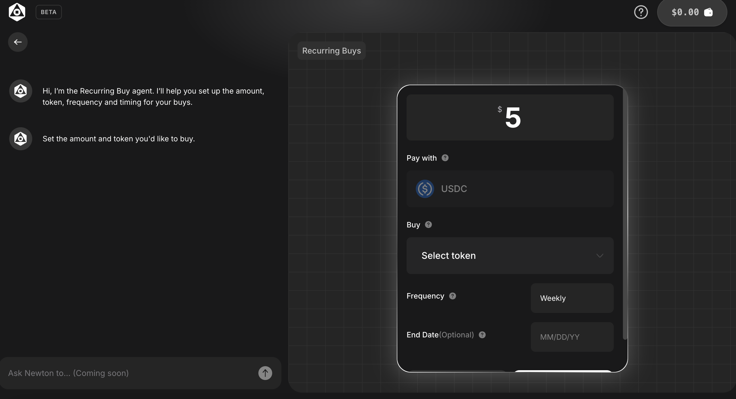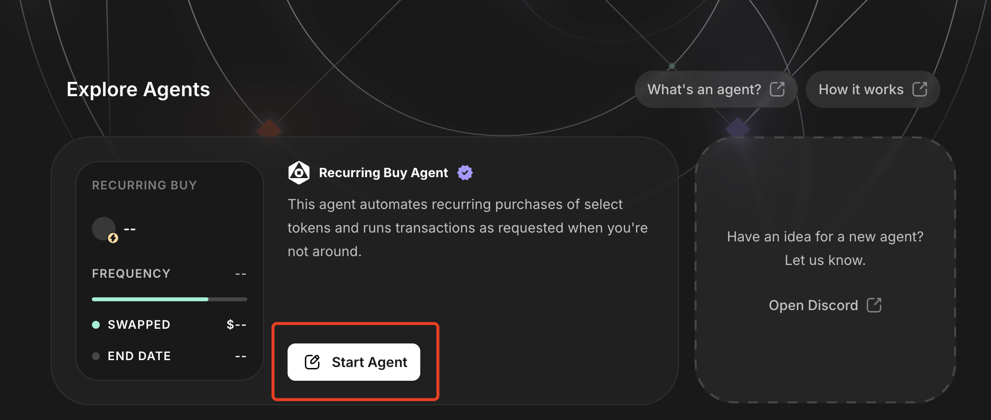 คลิก "เริ่มตัวแทน" เพื่อตั้งค่าตัวแทนอัตโนมัติ จากนั้นตั้งค่าสกุลเงินการซื้อ ความถี่ในการซื้อ และเวลาสิ้นสุด หรือจนกว่าเงินจะหมด การทำส่วนงานนี้ให้สำเร็จจะทำให้คุณได้รับ 500 คะแนนโดยตรง