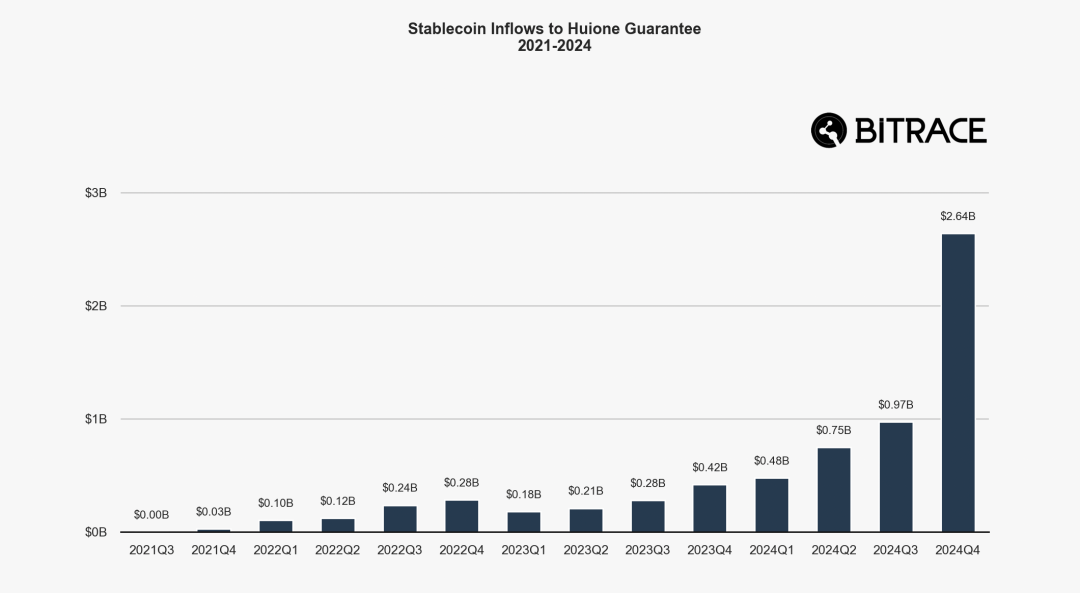 การเพิ่มขึ้นของ Haowang Guarantee และคู่แข่งในเอเชียตะวันออกเฉียงใต้มาพร้อมกับการขยายตัวแพร่หลายของ stablecoin ในกิจกรรมทางเศรษฐกิจจริงในท้องถิ่น แนวโน้มนี้เห็นได้ชัดเจนเป็นพิเศษในปี 2567 เมื่อขนาดธุรกิจของบริษัทขยายตัวเป็น 2.64 พันล้านดอลลาร์สหรัฐในไตรมาสที่สี่ของปีนั้น