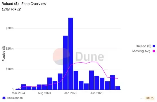 แผนภูมิแนวโน้มการระดมทุนของ Echo | ที่มา: Dune