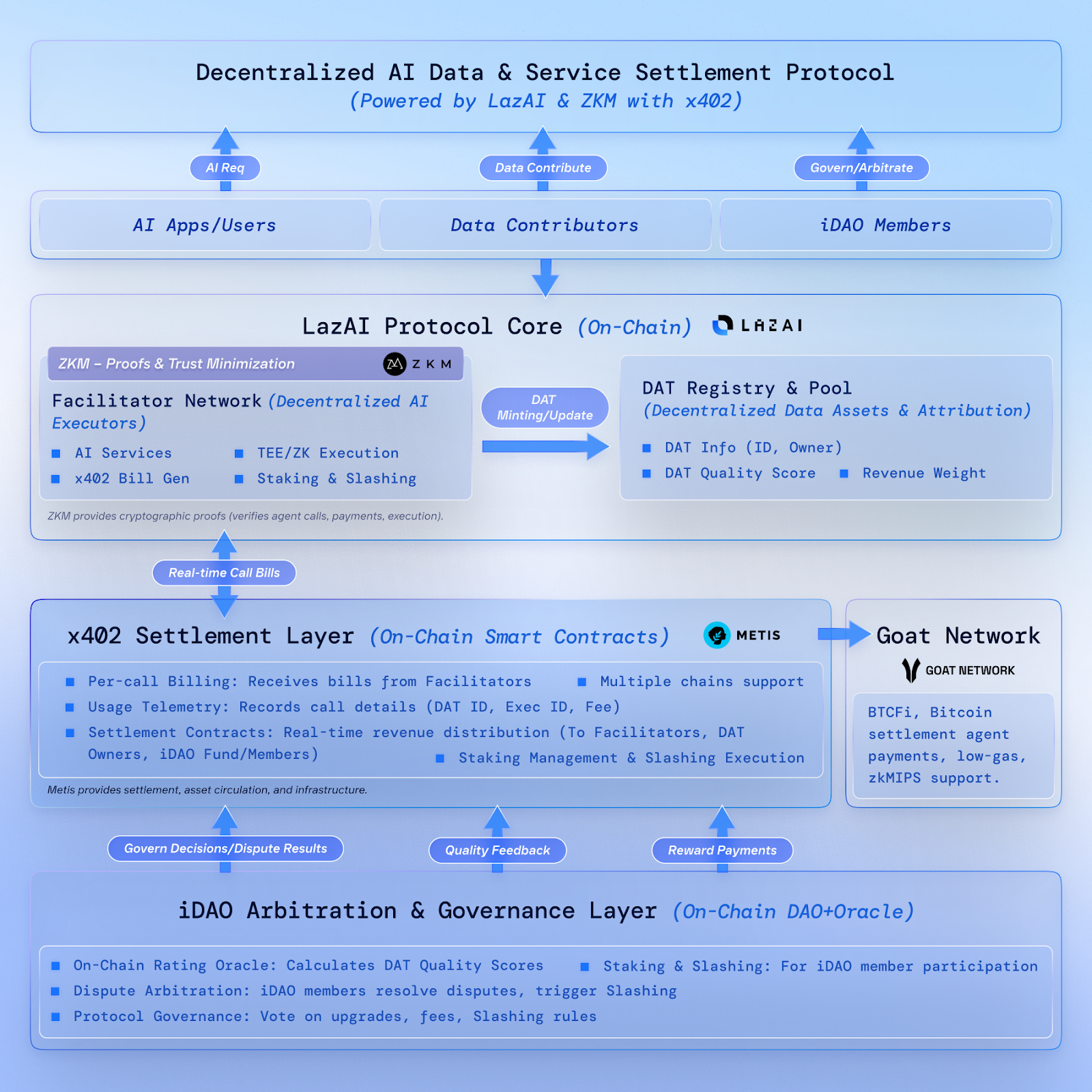 จุดแข็งหลักของ x402: LazAI x ZKM (เทคโนโลยี) + Metis x GOAT (สิ่งแวดล้อม)