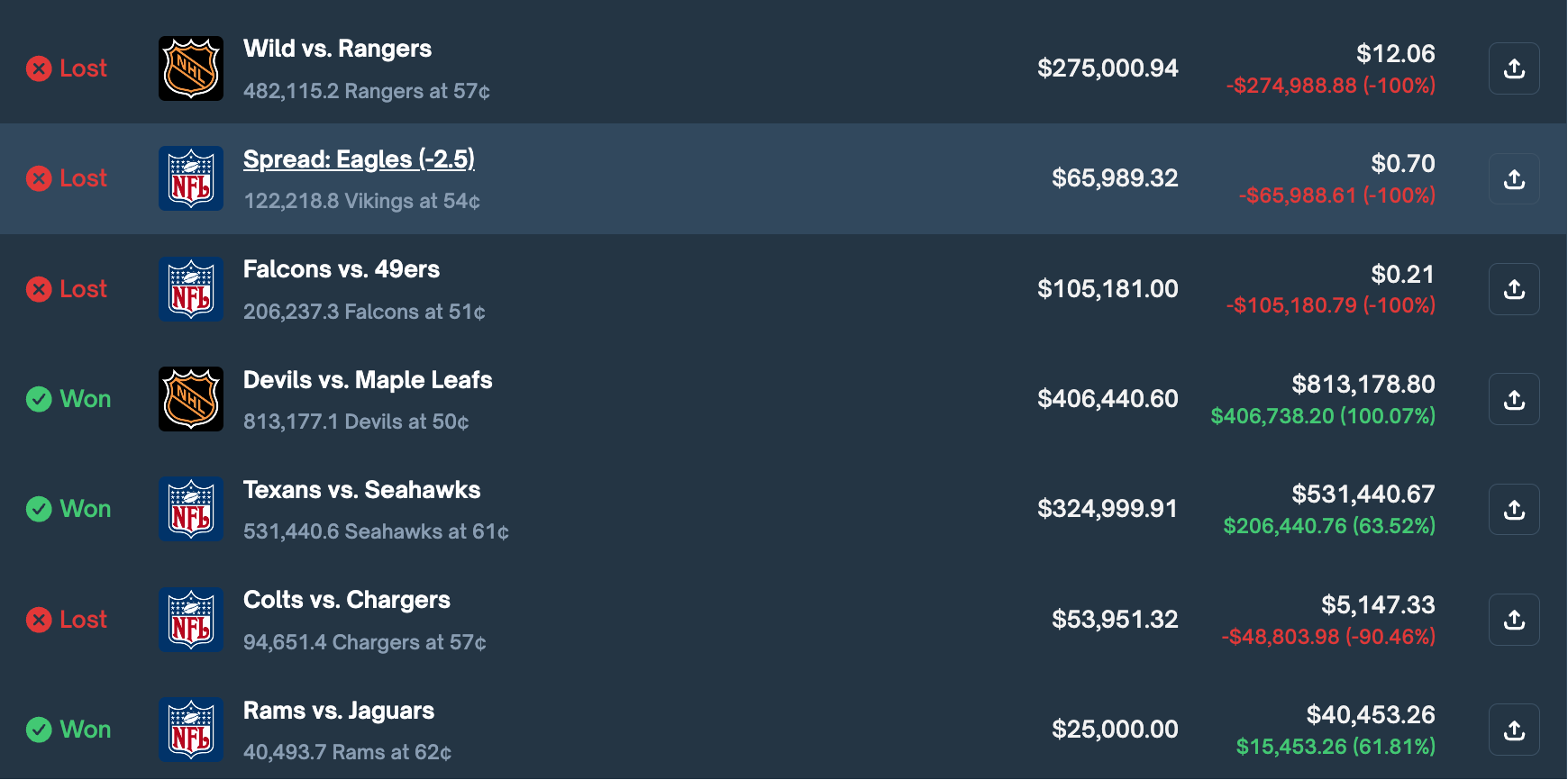 ประสบการณ์ของ Mayuravarma พิสูจน์อีกครั้งว่ากลยุทธ์ที่เรียกว่า "ปลายสัปดาห์" นั้นไม่น่าเชื่อถือใน Polymarket การเดิมพันกีฬาและกิจกรรมที่คล้ายกันมักจะพลิกผันอย่างรุนแรงในนาทีสุดท้าย คุณกำลังเดิมพันไม่ใช่แค่ "กำไรที่แน่นอน" เท่านั้น แต่รวมถึงเงินต้นทั้งหมดของคุณด้วย