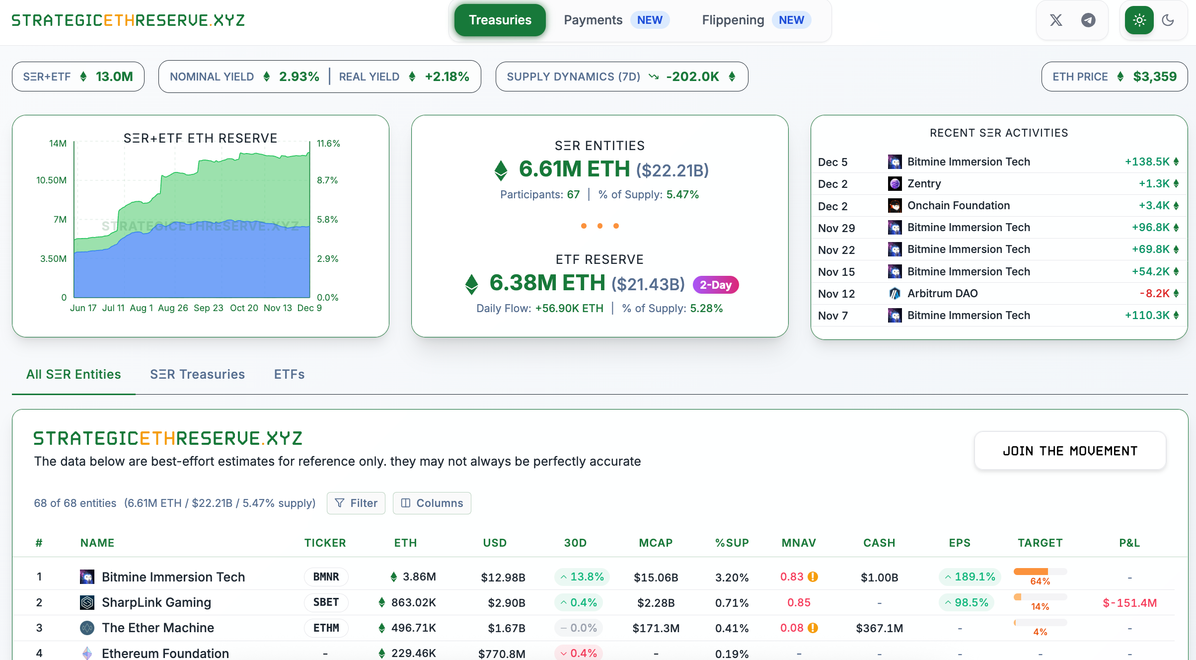 ณ เวลาที่เขียนบทความนี้ จาก ข้อมูลของเว็บไซต์ strategythreserve จำนวนบริษัทที่ดูแลคลัง ETH เพิ่มขึ้นเกือบ 70 บริษัท ซึ่งในจำนวนนี้ ได้แก่