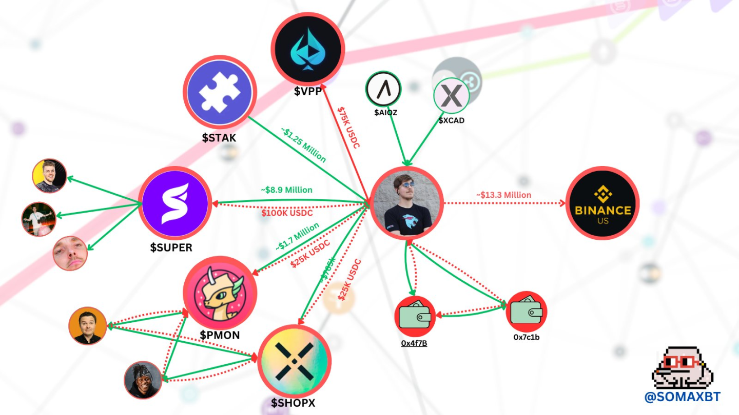 SomaXBT เปิดเผยหลายกรณีศึกษา ยกตัวอย่างโทเค็น SUPER ซึ่งเป็นโครงการที่ได้รับการสนับสนุนโดย Elliot Trades
