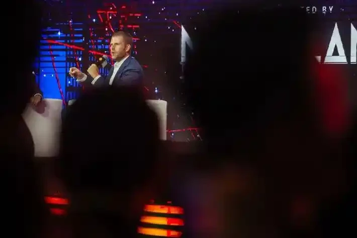 Eric Trump has become a regular at major global crypto conferences, pictured here at an event in Hong Kong. Photo: Daniel
