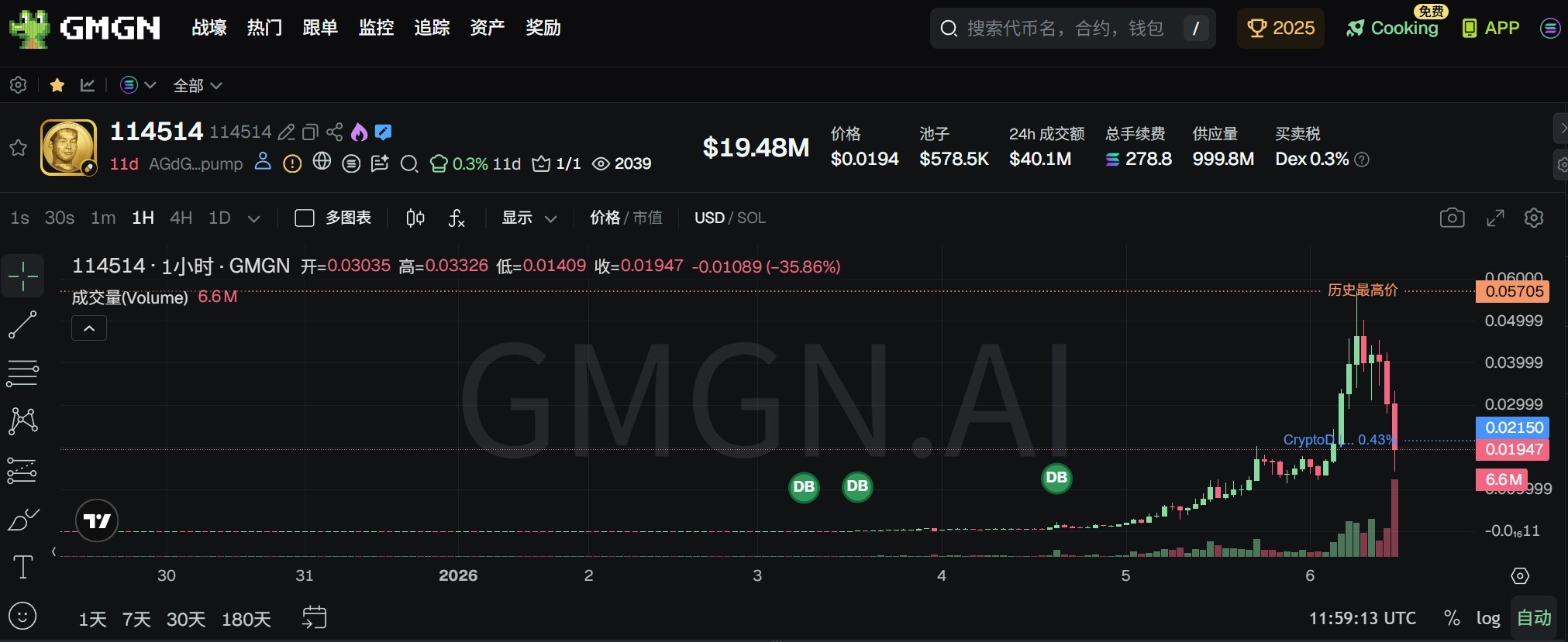 Vốn hóa của meme coin 114514 trên hệ sinh thái Solana giảm xuống dưới 20 triệu USD