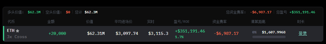 Odaily Tin tức Theo dõi từ OnchainLens, trader pension-usdt.eth đã chuyển từ vị thế bán khống sang mua vào, và đã mở một vị thế mua ETH với đòn bẩy 3x, nắm giữ 20,000 ETH, hiện lãi thả nổi hơn 300 nghìn USD.