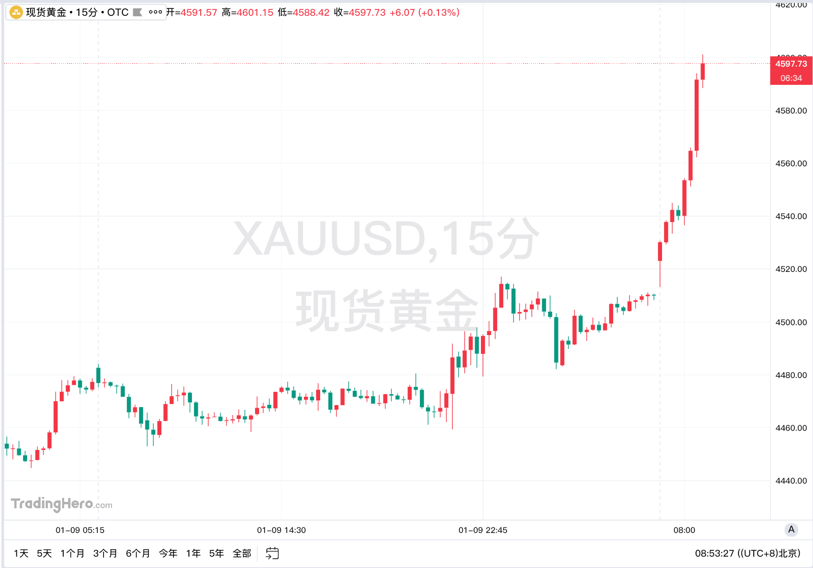 Theo Odaily, giá vàng giao ngay lần đầu tiên vượt qua ngưỡng 4.600 USD, tăng tích lũy 280 USD trong tháng đầu tiên của năm mới. (Jin10)