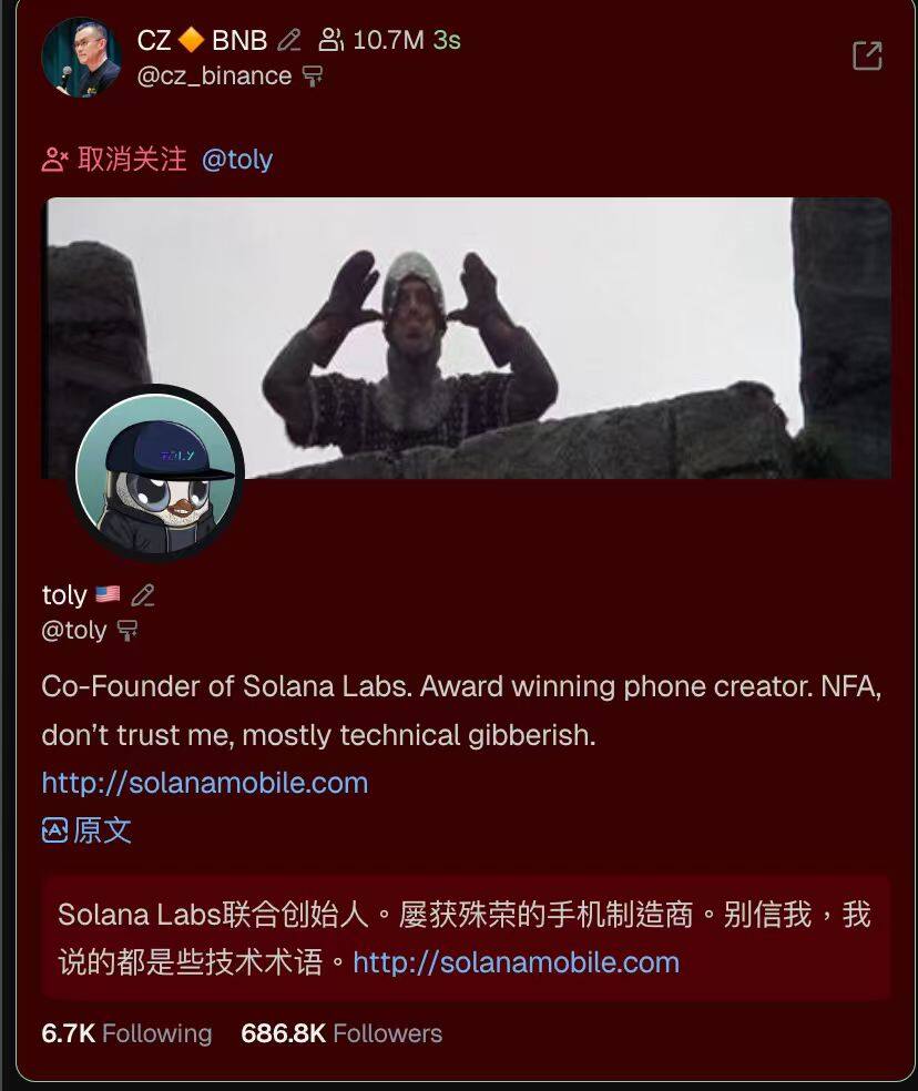 Odaily đưa tin CZ hiện đã hủy theo dõi tài khoản X của đồng sáng lập Solana Toly.