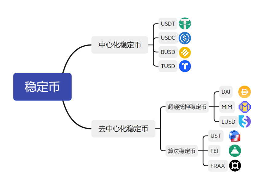 Làm thế nào để stablecoin giữ cho bản thân ổn định? Các loại stablecoin khác nhau có cơ chế giá trị khác nhau, nhưng nhìn chung, chúng có thể được phân loại nhanh chóng dựa trên việc chúng có được phân cấp hay không và loại tài sản thế chấp. Cần nhấn mạnh rằng đây không phải là một phân loại nhị phân đơn giản.Theo các nhà phát hành khác nhau, stablecoin có thể được chia thành stablecoin tập trung và stablecoin phi tập trung. USDT, USDC, v.v. là đại diện của các stablecoin tập trung, được phát hành và vận hành bởi hai tổ chức tập trung là Tether và Circle. Nền tảng đằng sau các stablecoin tập trung vẫn là tiền pháp định. Stablecoin được phát hành bởi các thực thể phi tập trung (chẳng hạn như DAI do MakerDAO phát hành) hoặc theo một cách nào đó (cơ chế thuật toán) làTiền tệ ổn định phi tập trung。