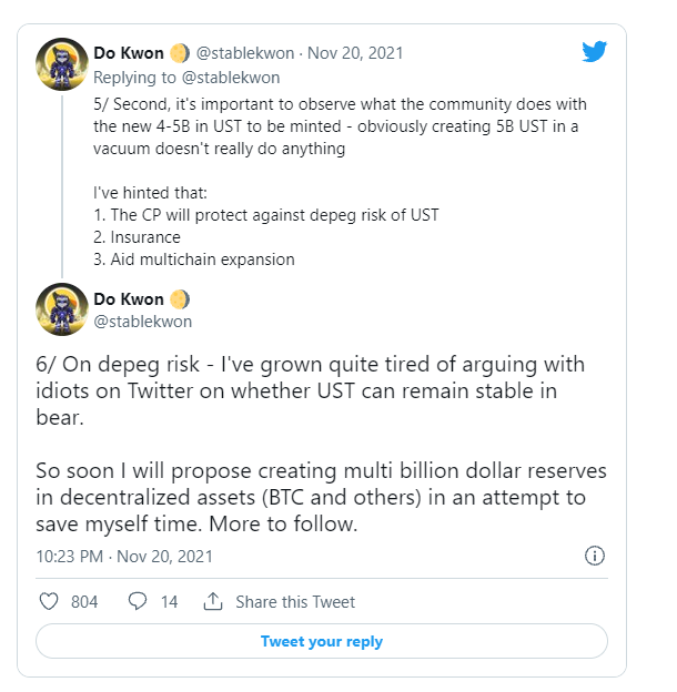 Đối với Kwon, sự bảo vệ lớn nhất của UST là nhu cầu mà nó được xây dựng. Nhờ CHAI, memeChat, Anchor, Mirror và nhiều sản phẩm khác sử dụng nó, UST có cơ sở người dùng ổn định và tăng trưởng nhanh. Ngay cả khi Luna giảm, nhu cầu về UST sẽ không biến mất.
