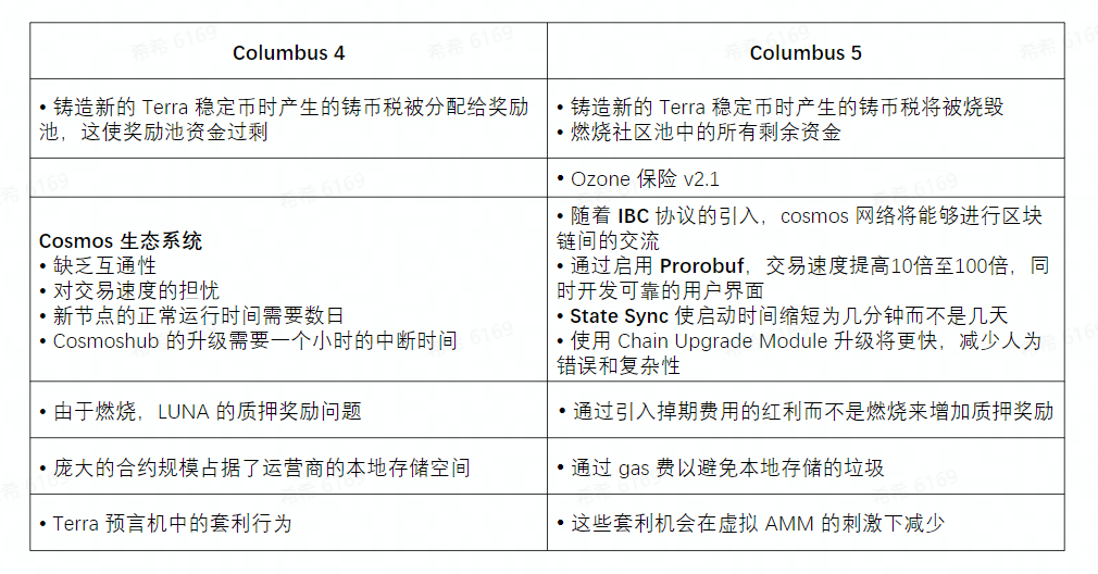 Vào tháng 9, Terra thông báo hoàn thành việc nâng cấp "Columbus-5". Đây là bản nâng cấp cho hệ thống cốt lõi của Terra, tạo điều kiện thuận lợi cho việc chuyển tài sản trên chuỗi IBC. Ngoài ra, bản nâng cấp này cũng bao gồm các cải tiến đối với các thuộc tính cốt lõi khác, cụ thể là: đốt cháy tất cả chủ quyền; nâng cấp lên Stargate; tích hợp Ozone (giao thức bảo hiểm sinh thái Terra) và Wormhole. Trong số đó, tích hợp truyền thông liên chuỗi khối (IBC) của Terra dự kiến sẽ tăng cường áp dụng đồng stablecoin TerraUSD (UST) trong toàn bộ hệ sinh thái Cosmos.