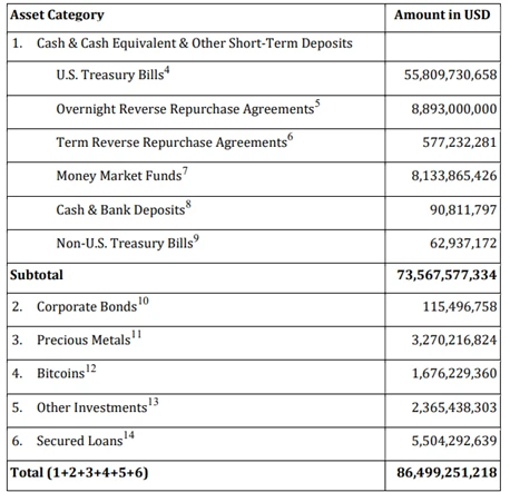 Thứ hai, về mặt tiết lộ tài sản, Paxos cũng đang cố gắng hết sức để thường xuyên tiết lộ việc nắm giữ khoản nợ của Hoa Kỳ và việc lưu hành stablecoin cũng như đưa ra các báo cáo kiểm toán. Lấy USDP làm ví dụ, theo báo cáo kiểm toán được tiết lộ trong hình bên dưới, chúng được neo giữ bằng lượng tiền mặt dồi dào, trái phiếu kho bạc ngắn hạn và tài sản có tính thanh khoản cao được Cục Dự trữ Liên bang mua lại.